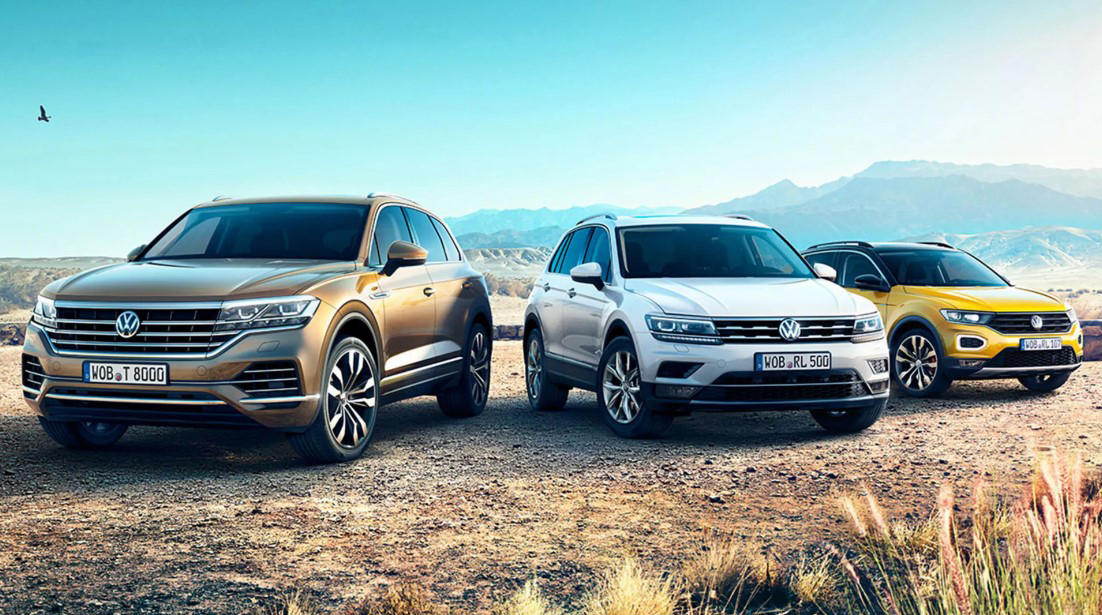 Weiterfahren – mit unseren Jahres- und Gebrauchtwagen SUV Range mit VW Touareg, VW Tiguan und VW T-Roc in karger, felsiger Landschaft Unsere Jahres- und Gebrauchtwagen machen als Ihr zuverlässiger Begleiter immer eine gute Figur.